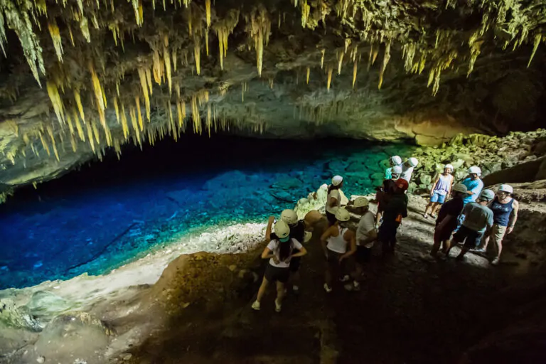 Snorkeling in the Mimoso Grotto – After gearing up, visitors follow a self-guided 300-meter trail to a deck where safety instructions and snorkeling practice take place. Then, the group descends 78 steps (depending on the cave’s water level) to begin snorkeling inside the cave, exploring stunning underwater formations.