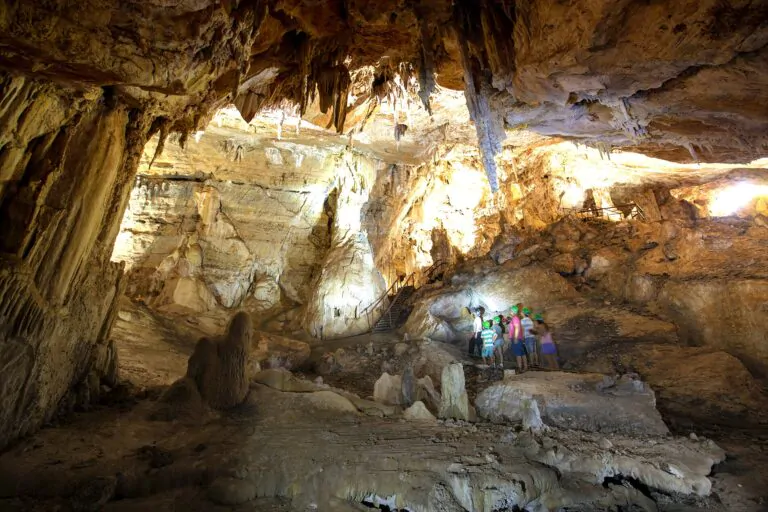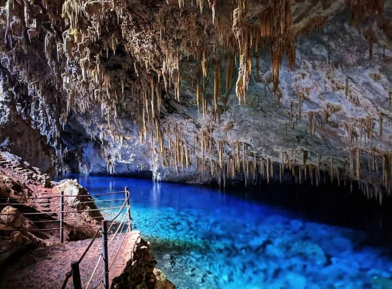 Blue Lake Cave (Gruta do Lago Azul) – Visit this iconic cave, home to an astonishing deep-blue lake — one of the largest flooded caverns in the world. Both the floor and ceiling display impressive stalactites and stalagmites that captivate tourists and researchers alike. The lake’s water source remains a mystery, though it’s believed to be fed by an underground river. The cave is located approximately 15 km from Bonito.