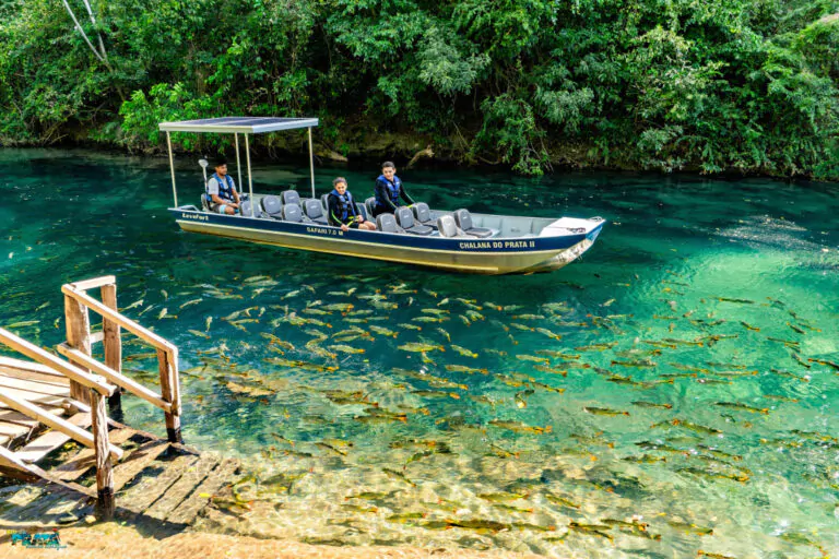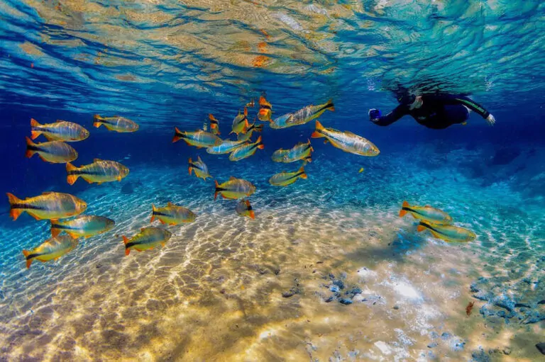 Snorkeling in the Sucuri River – The experience begins with an electric boat ride of about 1,300m upstream, allowing visitors to observe the local flora and fauna. The return is done by snorkeling downstream, where you’ll see fish and lush underwater vegetation, finishing where the Sucuri River meets the Formoso River. A support boat accompanies the group during the entire tour. Lunch included.